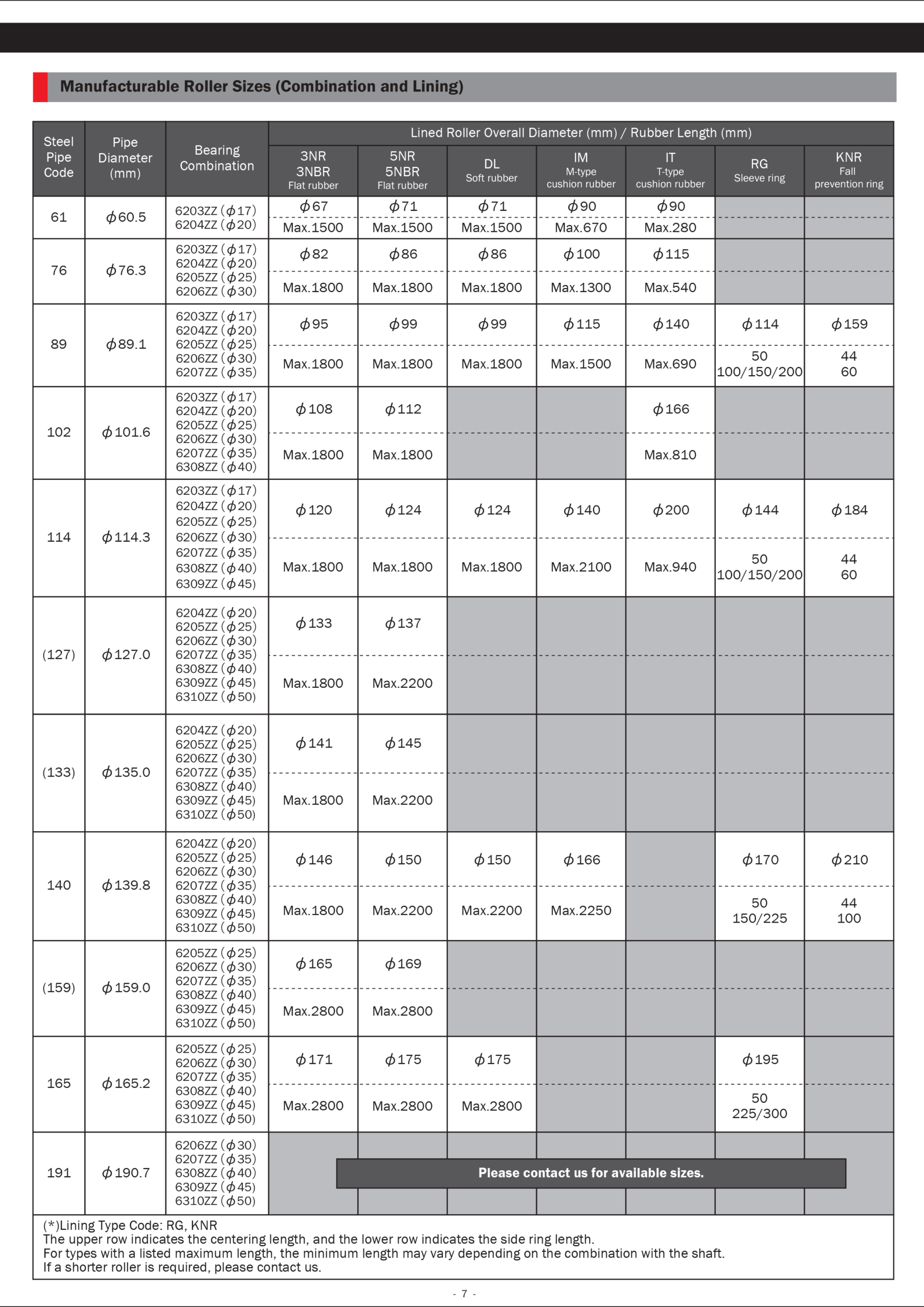 The above represents only a small part of our roller lineup. To learn more about our full product range, please contact us directly.